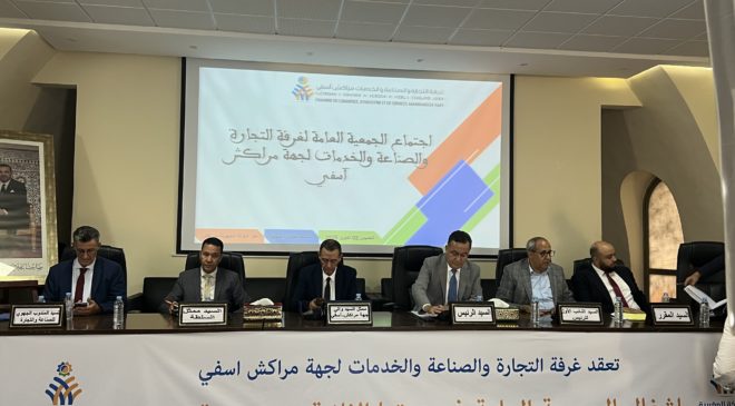 تنعقد في هذه الأثناء، الخميس 2 أكتوبر الجاري، أشغال الجمعية العامة لغرفة التجارة والصناعة والخدمات لجهة مراكش-آسفي، برئاسة كمال بنخالد، رئيس الغرفة، وبحضور عبد الصادق العالم الكاتب العام المكلف بالشؤم الجهوية ممثلا لوالي الجهة، إلى جانب أعضاء الغرفة ومدير التجارة والصناعة بالجهة.