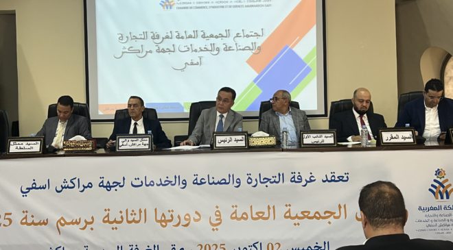 كما يناقش الأعضاء مسألة كراء مقر مؤقت لملحقة الغرفة بأسفي، إلى جانب المصادقة على مساهمة الغرفة في شركة التنمية الجهوية “مراكش كونغريس & إيفانتس” وميثاق المساهمين في مشروع قصر المؤتمرات وفضاء المعارض، فضلاً عن الموافقة المبدئية على عقد اتفاقية شراكة مع منظمة “أميدست”.