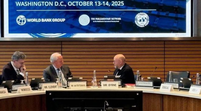 وتتواصل الاجتماعات الخريفية للبنك الدولي وصندوق النقد الدولي بالعاصمة الأمريكية واشنطن إلى غاية 18 أكتوبر 2025، بمشاركة وزراء ومحافظي بنوك مركزية ومسؤولين وخبراء اقتصاديين من مختلف أنحاء العالم.