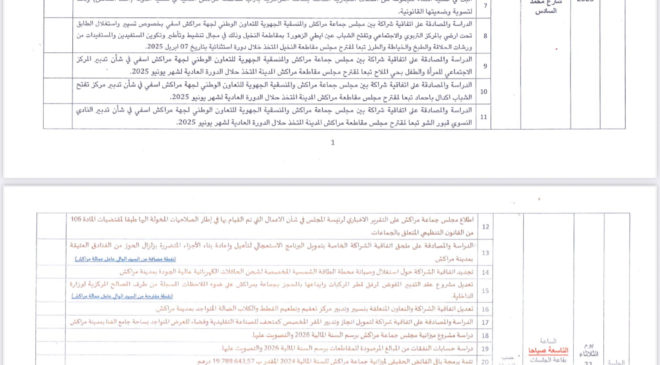 كما سيناقش المجلس ويصادق على تحويلات مالية داخل ميزانية التسيير لسنة 2025، بهدف دعم بعض الفصول ذات الأولوية، وتوفير الاعتمادات اللازمة لتنفيذ برامج ومشاريع مهيكلة قيد الإنجاز، خاصة تلك المرتبطة بالتنمية الحضرية، والإنارة العمومية، وتأهيل الفضاءات الخضراء.