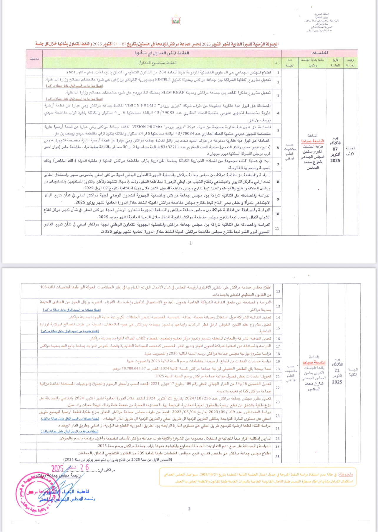 ومن المنتظر أن تختتم دورة أكتوبر العادية في جلستها الثالثة المقررة لاحقاً بالمصادقة النهائية على باقي النقاط، ومناقشة التوصيات المنبثقة عن اللجان الدائمة للمجلس، تمهيداً لإعداد جدول أعمال الدورة المقبلة لشهر فبراير 2026.