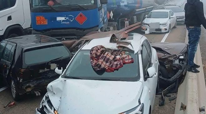 وتفيد المعلومات المتوفرة أن حوالي 20 مركبة، من بينها شاحنات وسيارات خفيفة، كانت ضمن الحادث الذي وُصف بـ”الأعنف” خلال الأشهر الأخيرة على هذا المقطع الطرقي.
