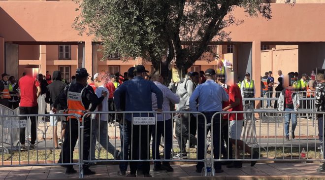 يعرف محيط ملعب الحارثي بمدينة مراكش، منذ صباح اليوم، تعزيزات وترتيبات أمنية مكثفة استعداداً للمباراة المرتقبة التي تجمع فريق الكوكب المراكشي بنظيره اتحاد تواركة، برسم الجولة السادسة من منافسات القسم الاحترافي الأول “إنوي”.