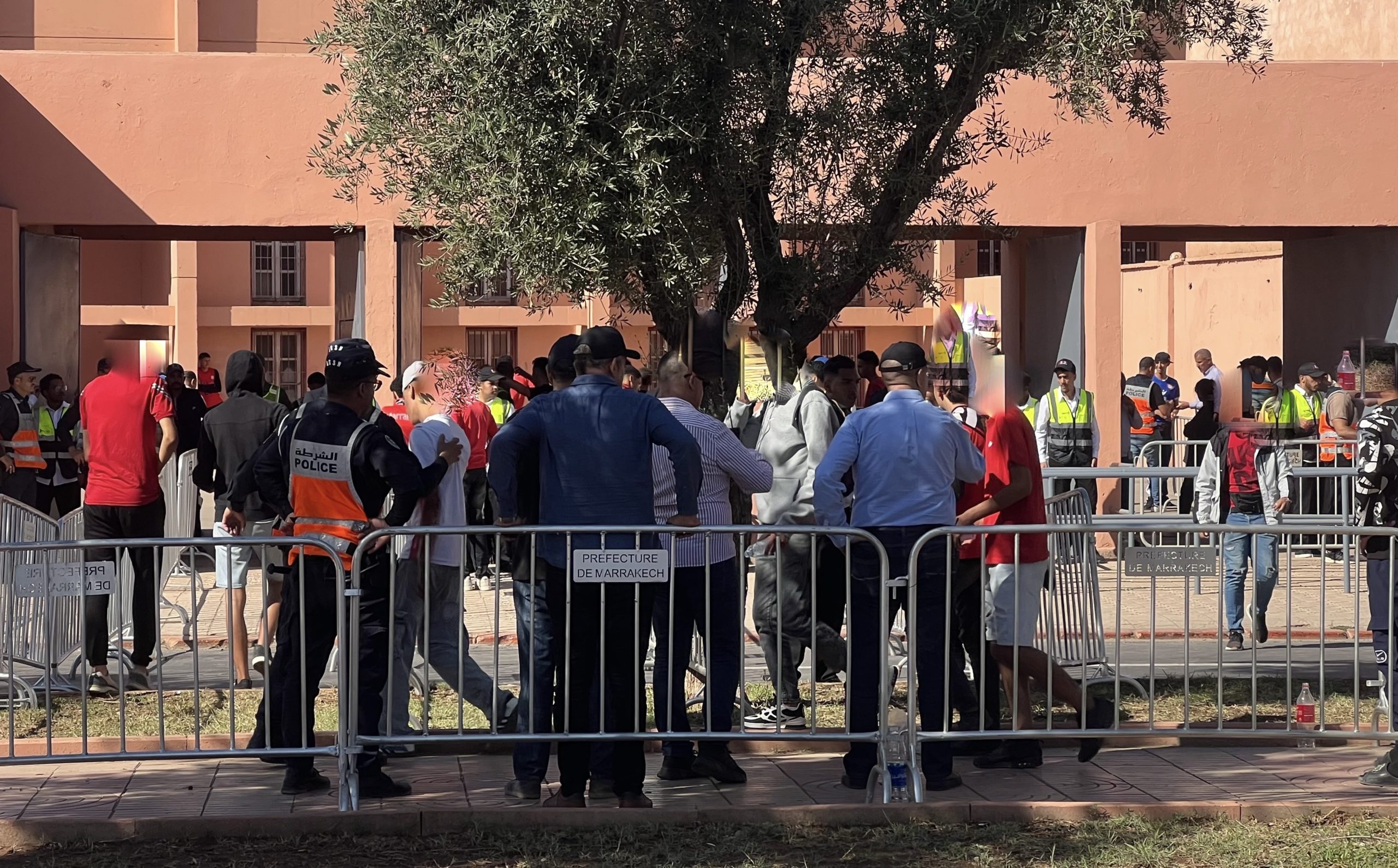 يعرف محيط ملعب الحارثي بمدينة مراكش، منذ صباح اليوم، تعزيزات وترتيبات أمنية مكثفة استعداداً للمباراة المرتقبة التي تجمع فريق الكوكب المراكشي بنظيره اتحاد تواركة، برسم الجولة السادسة من منافسات القسم الاحترافي الأول “إنوي”.