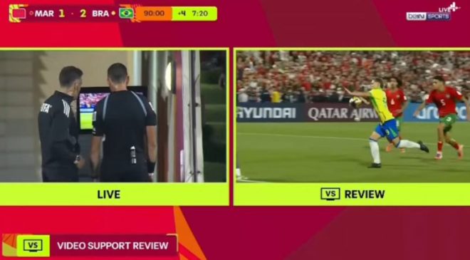 وفي وقت كانت المباراة تلفظ أنفاسها الأخيرة، خطف اللاعب ديل الهدف الثاني للبرازيل، وسط احتجاج مغربي كبير بعدما لم يُلغ الهدف رغم لمس المهاجم الكرة باليد قبل مراوغته الحارس بلعروش، ورغم استخدام البطاقة الخاصة بالتحدي (Challenge Card). ليُحسم اللقاء بانتصار البرازيل 2-1 وتأهلها إلى نصف النهائي لمواجهة البرتغال.