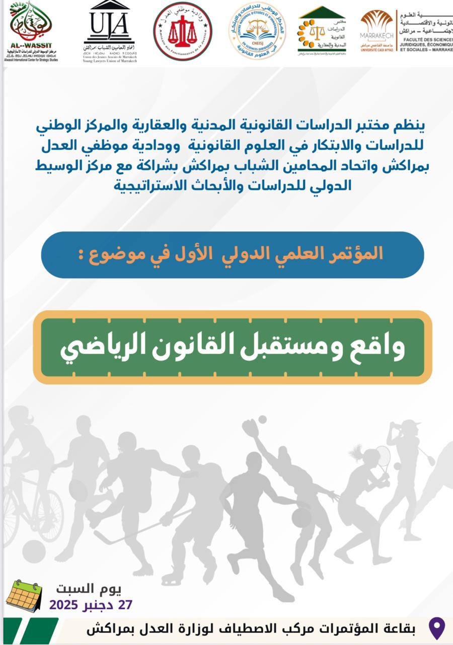 تحتضن مدينة مراكش، يوم السبت 27 دجنبر 2025، أشغال المؤتمر العلمي الدولي الأول حول “واقع ومستقبل القانون الرياضي”، الذي تنظمه عدة مؤسسات أكاديمية ومهنية، من ضمنها مختبر الدراسات القانونية المدنية والعقارية، والمركز الوطني للدراسات والابتكار في العلوم القانونية، وودادية موظفي العدل، واتحاد المحامين الشباب، بشراكة مع مركز الوسيط الدولي للدراسات والأبحاث الاستراتيجية.