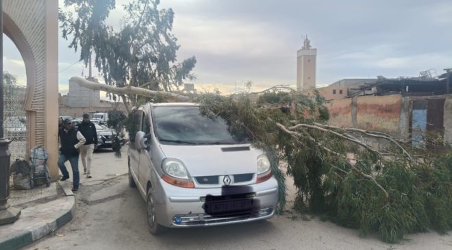 ويأتي هذا الحادث في ظل التقلبات الجوية التي تعرفها المنطقة وعددًا من مناطق المملكة، ما يعيد التأكيد على ضرورة توخي الحيطة والحذر، خصوصا بالقرب من الأشجار الكبيرة والبنيات القابلة للتأثر بقوة الرياح، التزامًا بتعليمات السلطات المختصة.