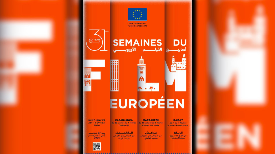 تنظم بعثة الاتحاد الأوروبي بالمغرب خلال الفترة ما بين 28 يناير الجاري و11 فبراير المقبل، الدورة الحادية والثلاثين لأسابيع الفيلم الأوروبي بالمغرب، بمدن الرباط و الدار البيضاء ومراكش.