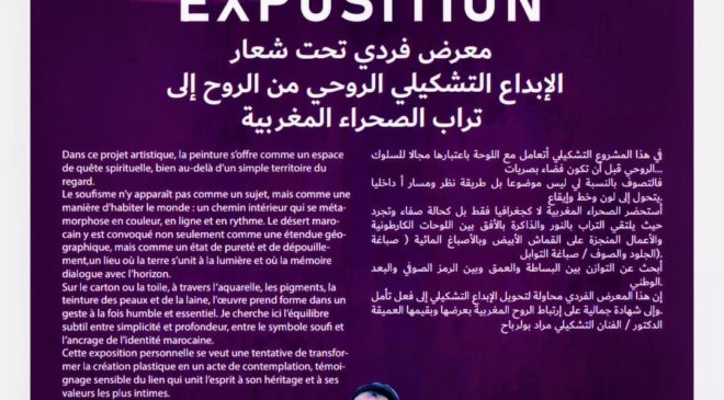 ويعتبر الفنان أن هذا المعرض محاولة لتحويل الإبداع التشكيلي إلى فعل جمالي شاهد على علاقة الإنسان المغربي بمحيطه الروحي والوطني، وعلى قدرة الفن على ترجمة هذه العلاقة إلى خطاب بصري معاصر.