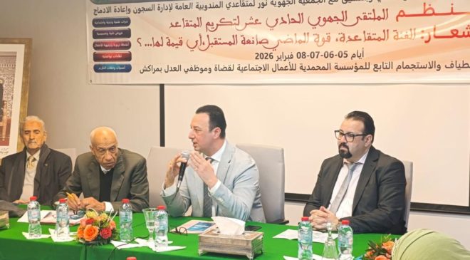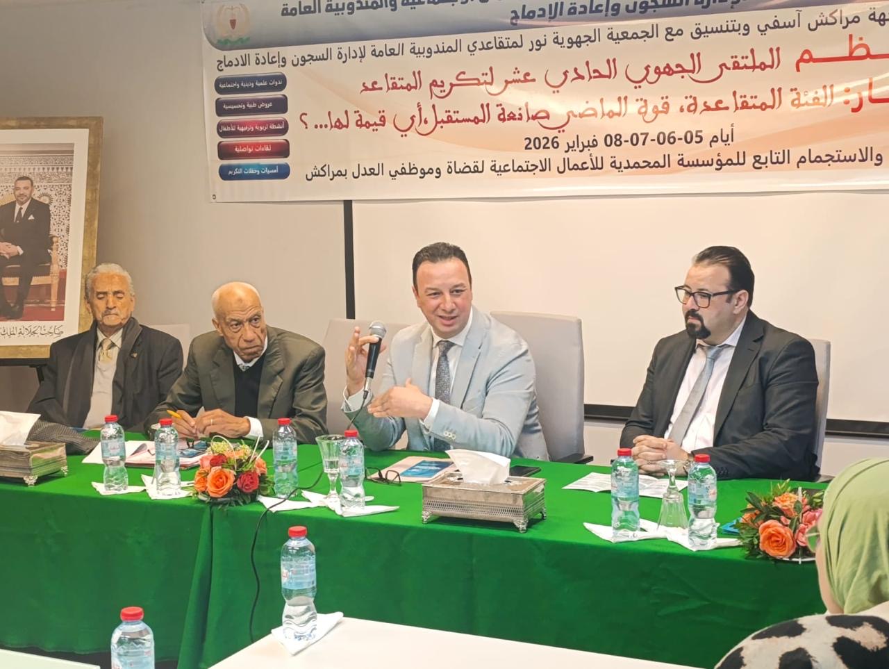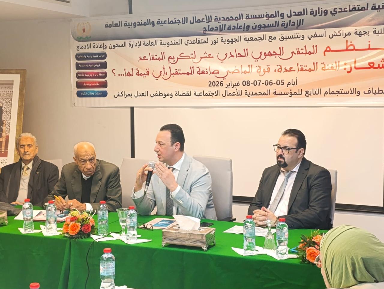 ويُذكر أن الملتقى الجهوي الحادي عشر لتكريم المتقاعدين، المنظم من طرف المكتب الجهوي للجمعية الوطنية لمتقاعدي وزارة العدل بجهة مراكش آسفي، بشراكة مع المؤسسة المحمدية للأعمال الاجتماعية لقضاة وموظفي العدل والمندوبية العامة لإدارة السجون وإعادة الإدماج، تضمن برنامجًا متنوعًا شمل ندوات علمية ودينية، لقاءات تواصلية، عروضًا طبية وتحسيسية، أنشطة تربوية وترفيهية، إضافة إلى أمسيات وحفلات تكريمية على شرف المتقاعدين.