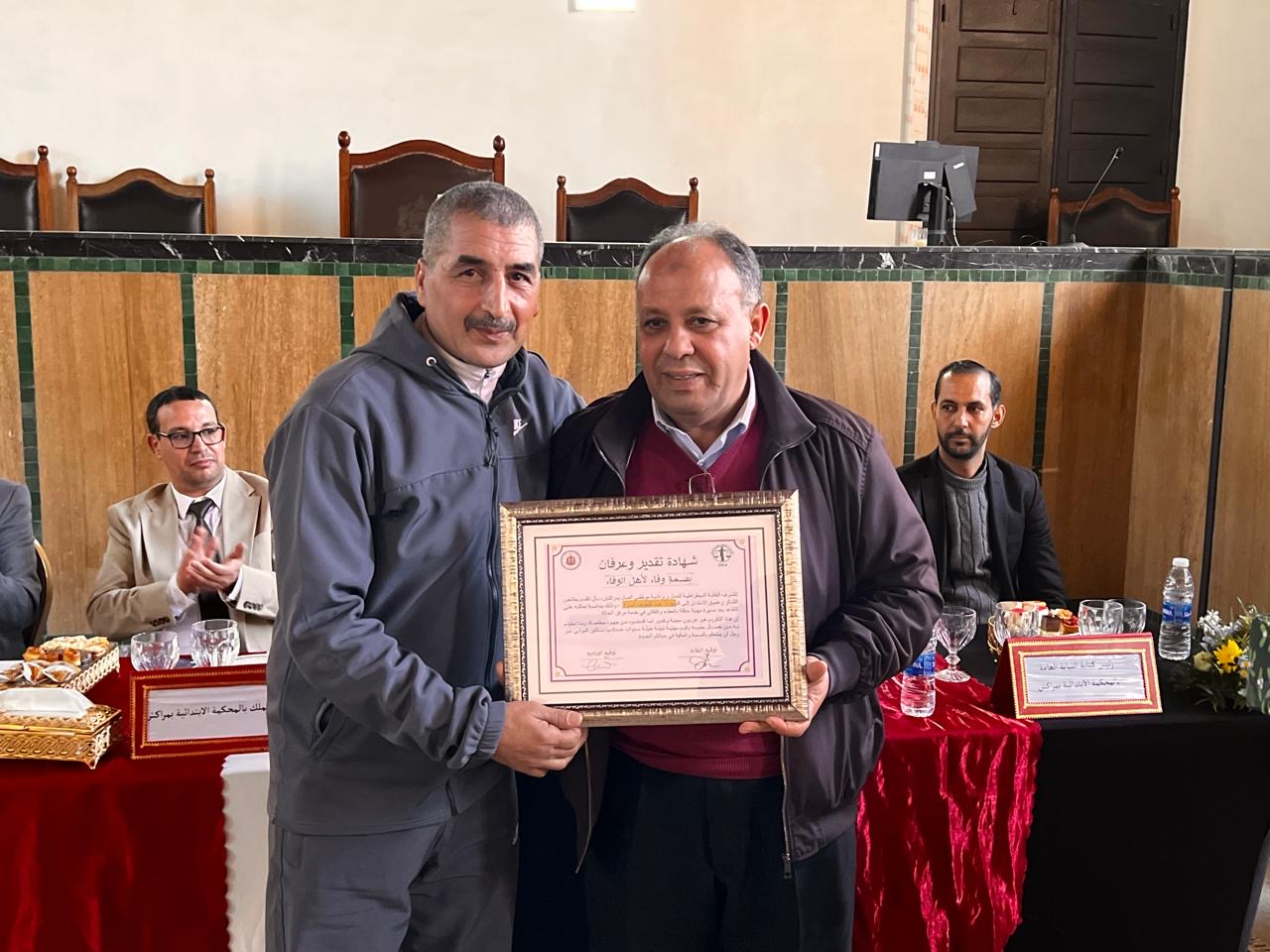في مبادرة تجسّد ثقافة الاعتراف وترسّخ قيم الوفاء داخل المرفق القضائي، نظّمت المحكمة الابتدائية بمراكش، بشراكة مع المكتب المحلي لودادية موظفي العدل والمكتب المحلي للنقابة الديمقراطية للعدل، يوم الخميس 12 فبراير 2026، حفلاً تكريمياً على شرف عدد من موظفي قطاع العدل المحالين على التقاعد، تقديراً لمساراتهم المهنية وما بذلوه من مجهودات متواصلة في خدمة العدالة والمتقاضين.