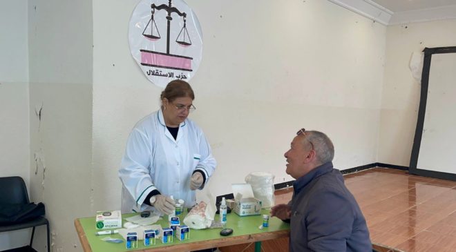 وجرى تنظيم هذا النشاط بحضور عدد من المسؤولين الحزبيين، من بينهم المفتش الإقليمي يونس أبوسكسو، والكاتب الإقليمي محمد طوالة، إلى جانب مريم العربي، عضو اللجنة المركزية للحزب، حيث أكد المتدخلون أهمية تكثيف المبادرات الصحية والتحسيسية التي تستهدف الفئات التي تعاني من أمراض مزمنة، وتعزز ثقافة الوقاية.