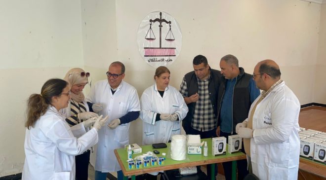 احتضن مقر حزب الاستقلال بعرصة المعاش بمدينة مراكش، زوال يوم السبت 28 فبراير 2026، حملة تحسيسية لفائدة مرضى داء السكري، نظمتها رابطة الصيادلة الاستقلاليين بمراكش، تحت شعار: “رمضان صحي… بلا مضاعفات للسكري”، وذلك بتنسيق مع المكتب الإقليمي للحزب.