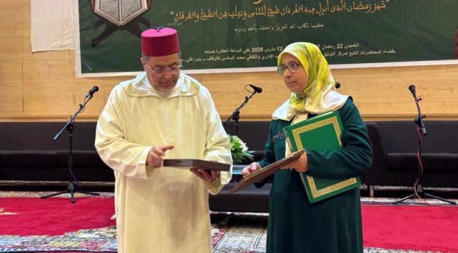 واختُتم الحفل بالدعاء الصالح لأمير المؤمنين صاحب الجلالة الملك محمد السادس نصره الله وأيده، في أجواء روحانية عكست المكانة السامية للقرآن الكريم في وجدان المغاربة، وحرص المؤسسات الدينية على صون تعاليمه وترسيخ قيمه في المجتمع.