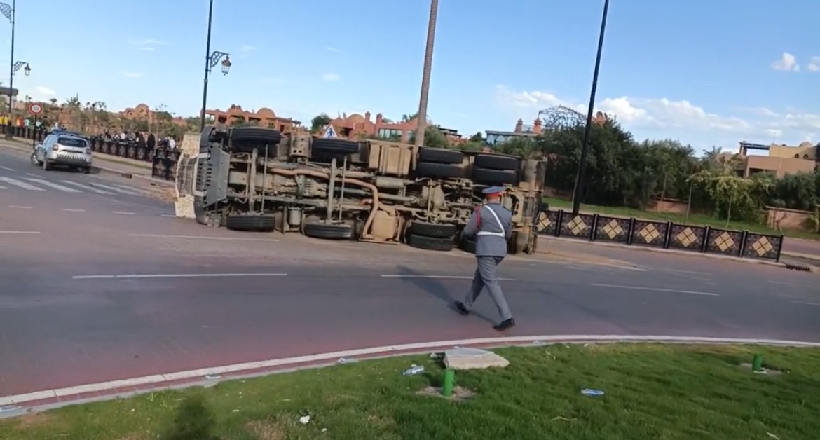 شهد المدخل الشمالي لمدينة مراكش، قبل قليل من يومه الثلاثاء، حادثة سير جراء انقلاب شاحنة من الحجم الكبير كانت محملة بالأتربة، وذلك على مستوى الطريق الوطنية الرابطة بين الدار البيضاء ومراكش، وتحديداً بالقرب من الملعب الكبير.