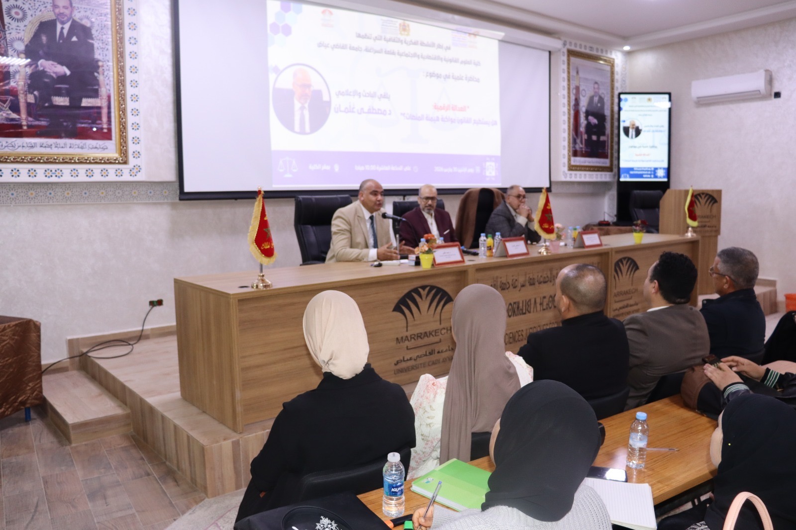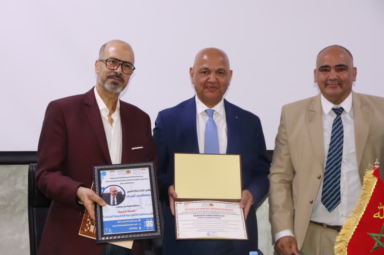 في مستهل اللقاء، أكد عميد الكلية، محمد الغالي، أن التحول الرقمي تجاوز كونه تطوراً تقنياً ليصبح عنصراً بنيوياً يعيد صياغة مفهوم العدالة، مشيراً إلى أن الانتشار الواسع للأخبار الزائفة والجرائم الإلكترونية يفرض على المشرّع تطوير ترسانة قانونية تتسم بالمرونة والسرعة لمواكبة هذه المتغيرات.