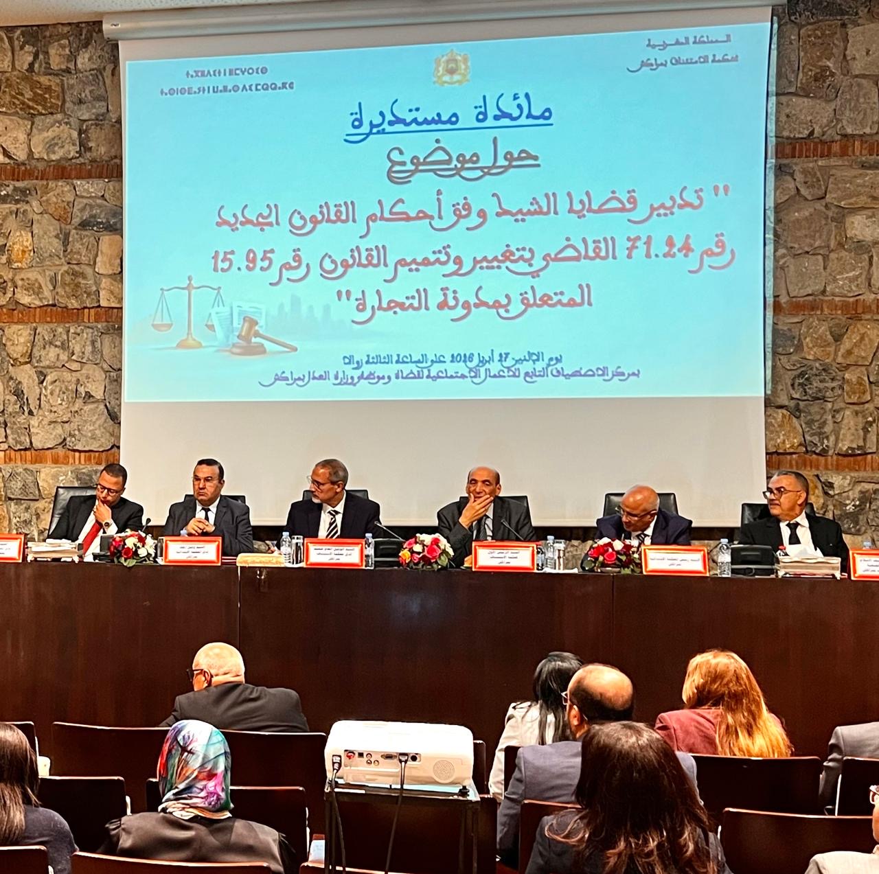 في إطار تنزيل برنامجها التواصلي الرامي إلى تعميم المعرفة القانونية والقضائية ومواكبة المستجدات التشريعية، نظمت محكمة الاستئناف بمراكش، يوم الاثنين 27 أبريل 2026، بمركز الاصطياف التابع للأعمال الاجتماعية لقضاة وموظفي وزارة العدل، مائدة مستديرة خصصت لموضوع: “تدبير قضايا الشيك وفق أحكام القانون الجديد رقم 71.24 القاضي بتغيير وتتميم القانون رقم 15.95 المتعلق بمدونة التجارة”، وذلك بحضور عدد من المسؤولين القضائيين والقضاة ومهنيي العدالة والمهتمين بالشأن القانوني.